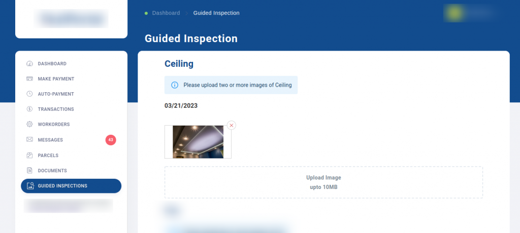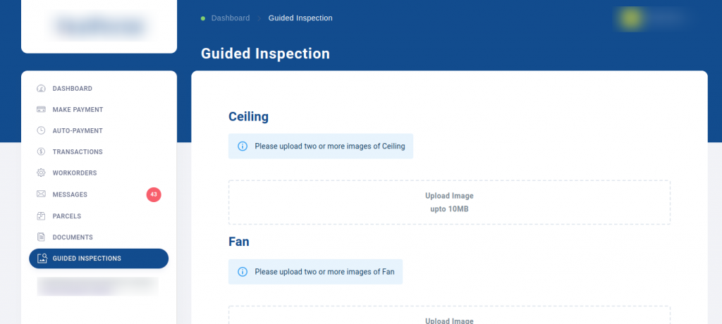 - From the side menu click on Guided Inspections to start inspection for move in or move out.