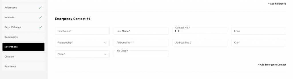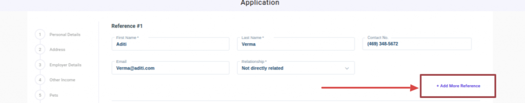 7. References: Add references information including name, contact number, email and relationship to applicant.