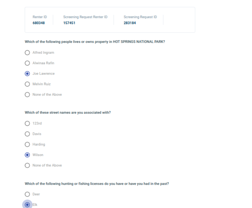 - Mark the correct answers to confirm your identity.