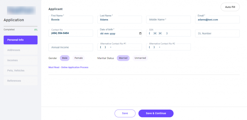 - Add all applicant details, including full name, contact information, date of birth, social security number, etc.