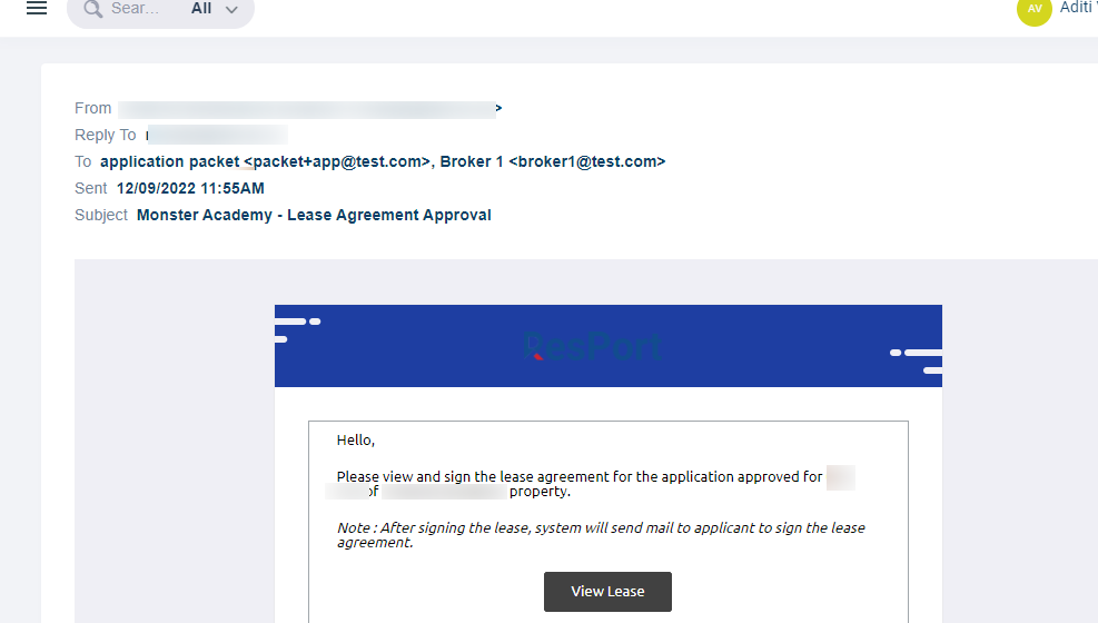 - Once the applicant is approved, an email goes out to the broker for lease review and signature.