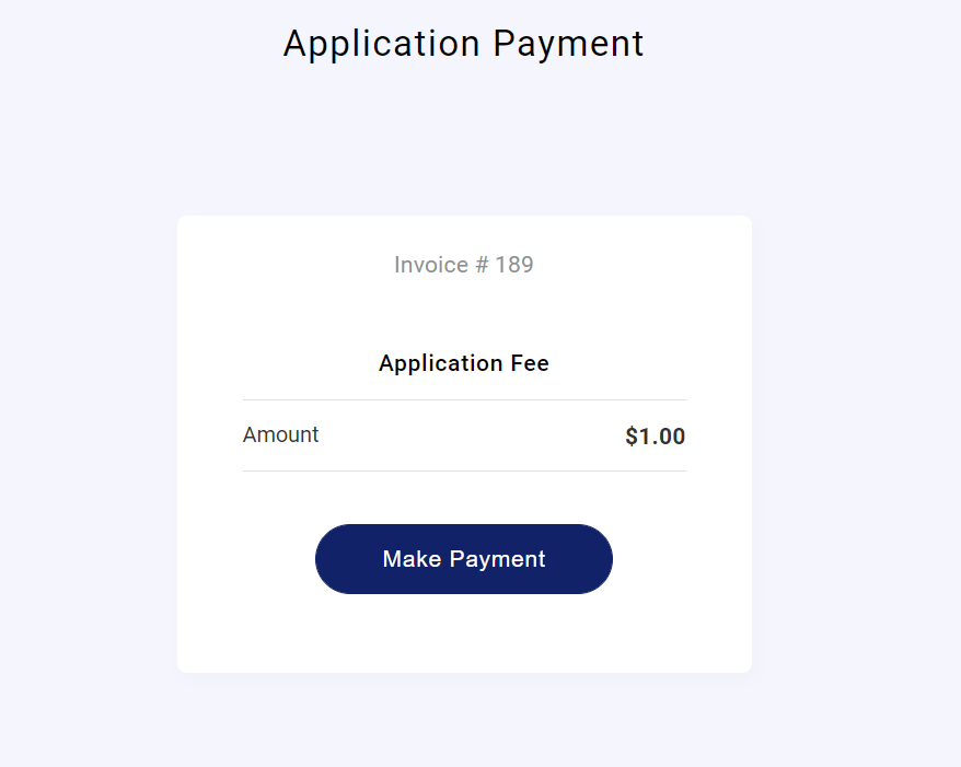 - Confirm the application amount and click Make Payment to continue.