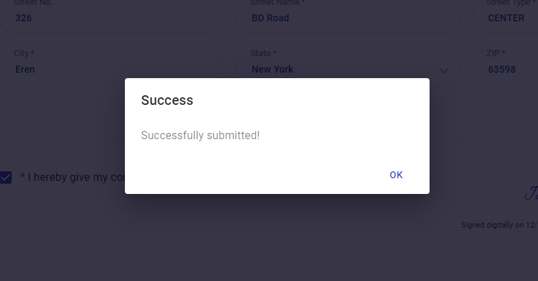Upon submission, a pop up will show confirm submission.