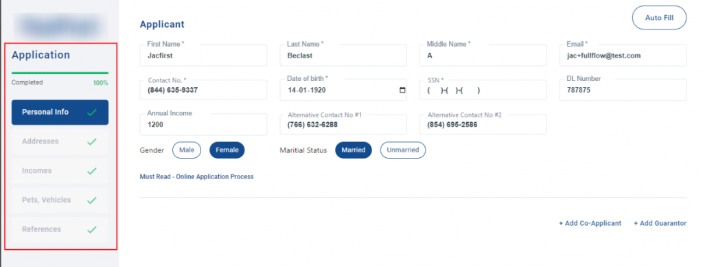 - Add Co-applicant: Add co-applicant for every adult living within the unit.