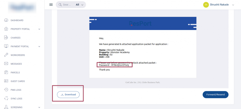 - Within the email sent post application, applicants will receive a link and Property ID to login to the resident/tenant portal.